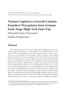 Venture Capital as a Growth Catalyst: Founders’ Perceptions from German Early-Stage High-Tech Start-Ups.