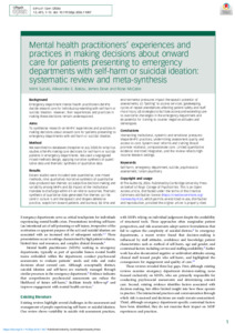 Mental health practitioners’ experiences and practices in making decisions about onward care for patients presenting to emergency departments with self-harm or suicidal ideation: systematic review and meta-synthesis.