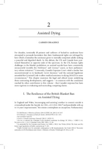 For decades, terminally ill patients and sufferers of locked-in syndrome have attempted to persuade lawmakers that their fundamental rights are infringed by laws which criminalise the assistance given to mentally competent adults seeking a peaceful and dignified death. In this debate, the UK and Canada have positioned themselves at opposite ends of the spectrum. In the UK, human rights challenges to the blanket prohibition on assisted suicide have been consistently unsuccessful (notably the Nicklinson and Conway cases), as have parliamentary reform initiatives. Conversely, Canada’s Supreme Court ruled a similar ban unconstitutional in its landmark Carter decision, and the national legislature amended the Criminal Code to allow medical assistance in dying (MAiD) in some circumstances. This chapter examines the legal and ethical issues underlying these contrasting developments, and suggests – in common with the conclusion reached by other contributors to this volume – that Canada’s response has been more rigorous in evaluating and reconciling competing claims....