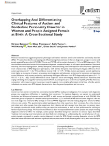 Overlapping And Differentiating Clinical Features of Autism and Borderline Personality Disorder in Women and People Assigned Female at Birth: A Cross-Sectional Study.