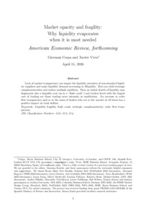 | Publisher Keywords: | Liquidity fragility, flash crash, strategic complementarity, order flow transparency |