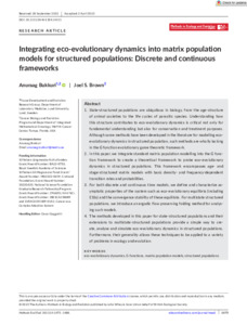 Integrating eco‐evolutionary dynamics into matrix population models for structured populations: Discrete and continuous frameworks.
